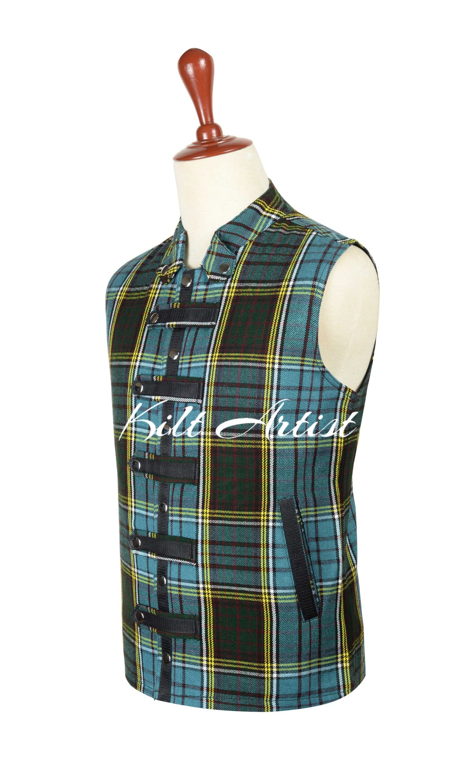 Pair it with black jeans and boots for a punk rock-inspired outfit, or wear it with a kilt for a Highland-inspired edgy look. With the Anderson Tartan Punk Rock Vest, tradition meets fearless fashion.