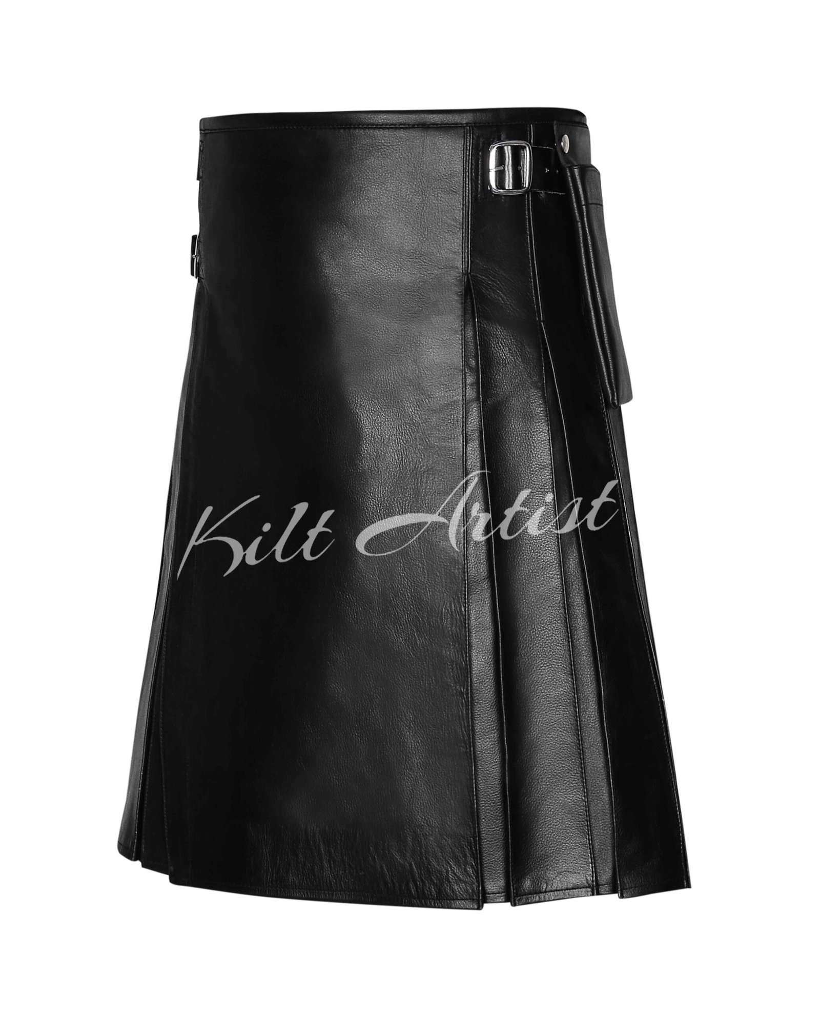 The Black Genuine Leather Kilt is built to maintain its shape and appearance over time. The strong stitching enhances durability, making it suitable for regular wear. The premium leather finish gives it a high-end look that pairs well with boots, shirts, jackets, or casual tops, making it a versatile addition to any wardrobe.