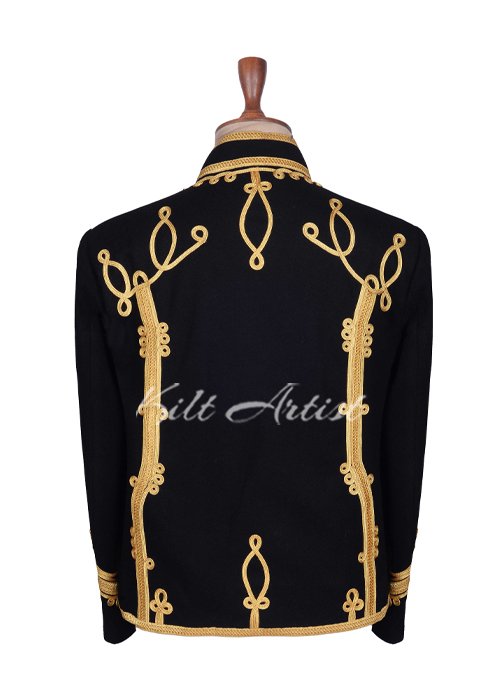 Pair it with tailored trousers and boots for a polished military-inspired ensemble, or style it over a shirt or knitwear for a refined modern look. The Black Wool Military Gold Braided Doublet Jacket is more than just outerwear—it is a symbol of strength, leadership, and timeless style.