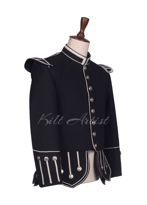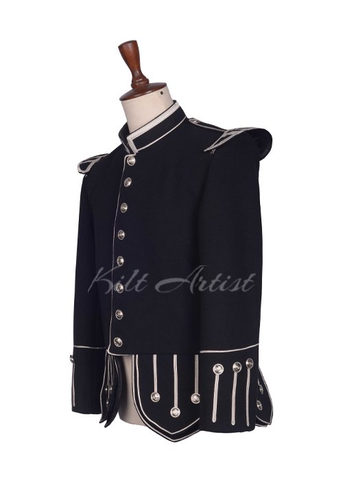 Make a bold ceremonial statement with our Black Wool Silver Braided Scottish Military Piper Doublet, a timeless piece inspired by traditional Highland military uniforms. Designed especially for pipers, drum majors, and formal Scottish occasions, this doublet combines heritage craftsmanship with modern elegance.