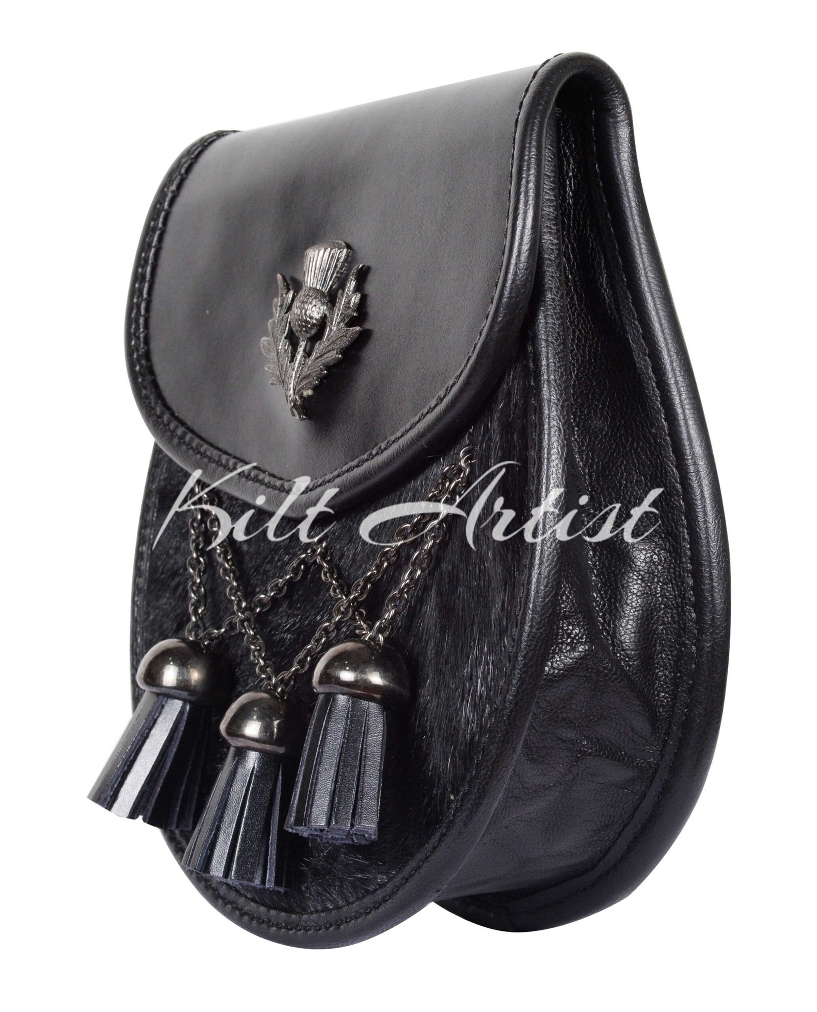 Elevate your Highland attire with our Bovine Fur Cross Tassels Semi Dress Sporran, a striking blend of traditional craftsmanship, premium materials, and timeless Scottish design. Carefully handcrafted using genuine leather and authentic bovine fur, this sporran offers both durability and a bold, distinguished appearance, making it ideal for semi-formal and formal occasions.