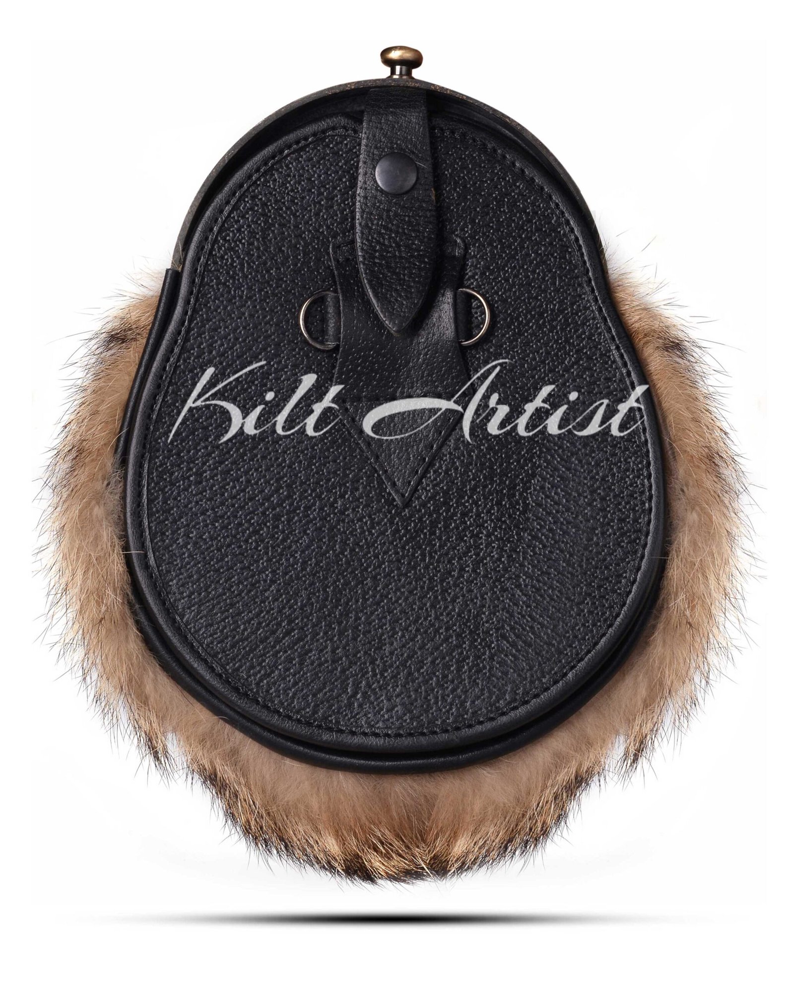 Designed for both style and practicality, the sporran includes a spacious interior to hold essentials such as your phone, wallet, keys, and small personal items. A secure flap closure keeps belongings protected while maintaining a sleek, refined appearance. The soft leather backing and lining provide comfort and safeguard your clothing.