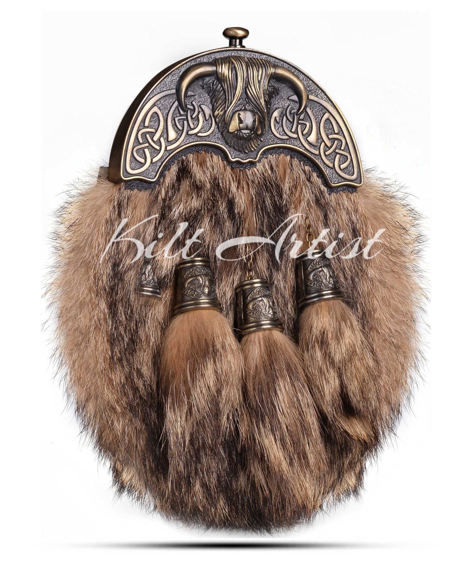 Brass Highland Cow Coyote Fur Full Dress Sporran