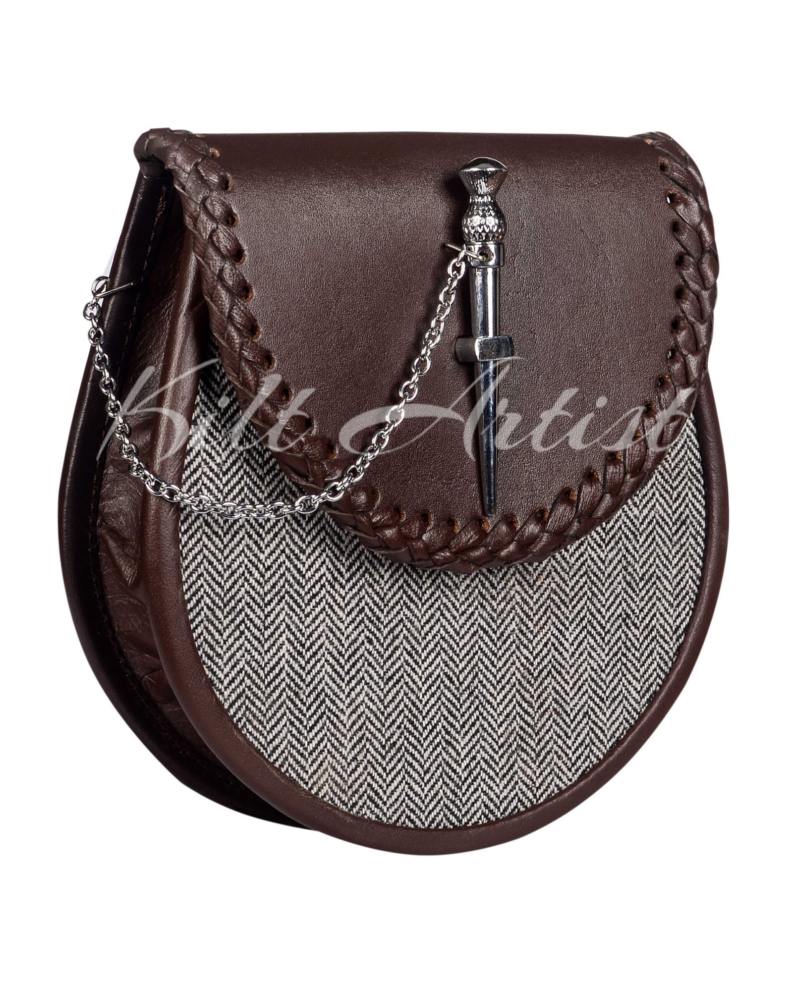 Brown Leather and Gray Tweed Day Sporran