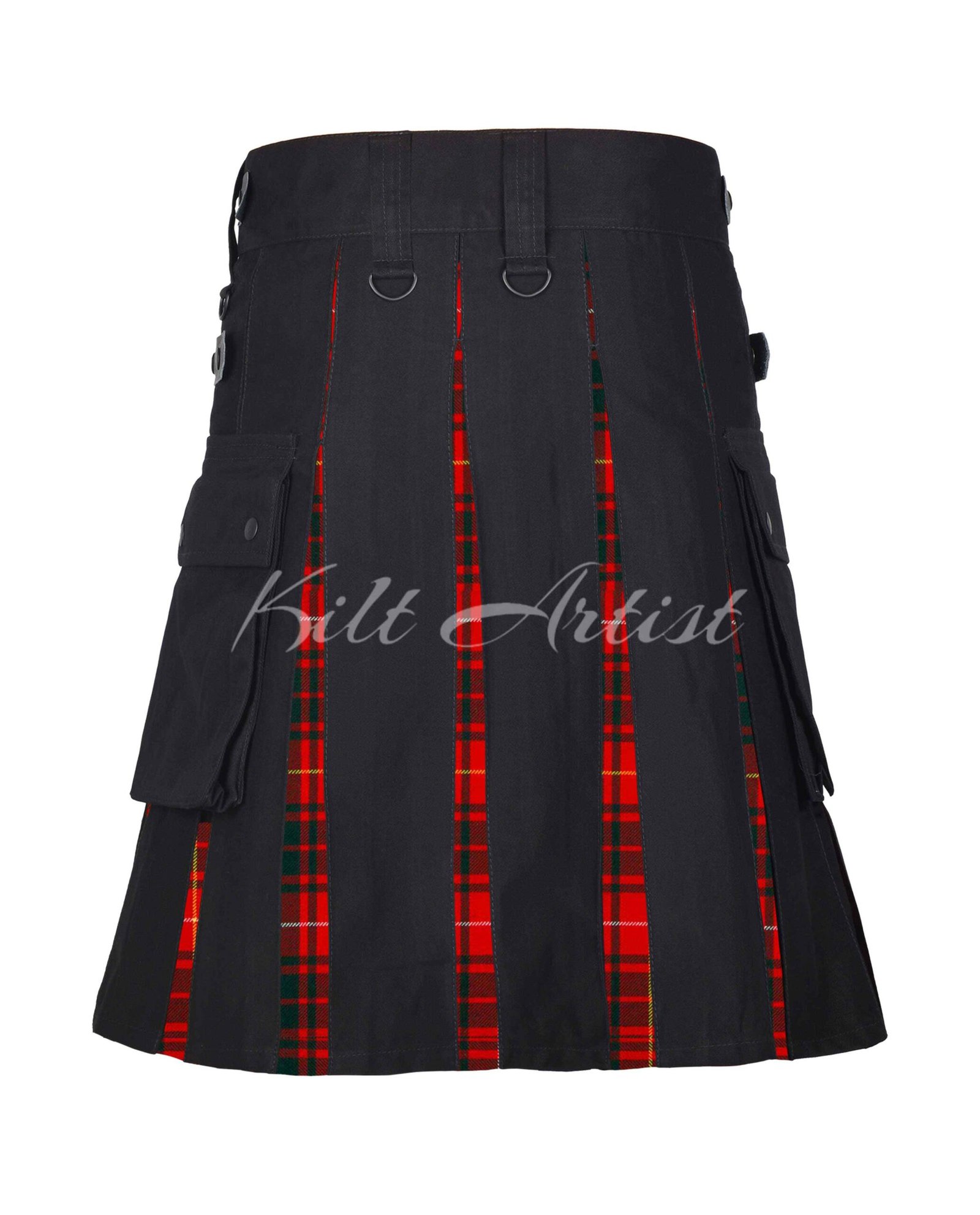 Designed for modern practicality, the kilt includes spacious utility cargo pockets secured with snap button closures, allowing safe storage of essentials such as phones, wallets, keys, and tools. Adjustable leather straps with rust-resistant metal buckles ensure a secure, customizable fit while enhancing the kilt’s rugged and contemporary aesthetic.