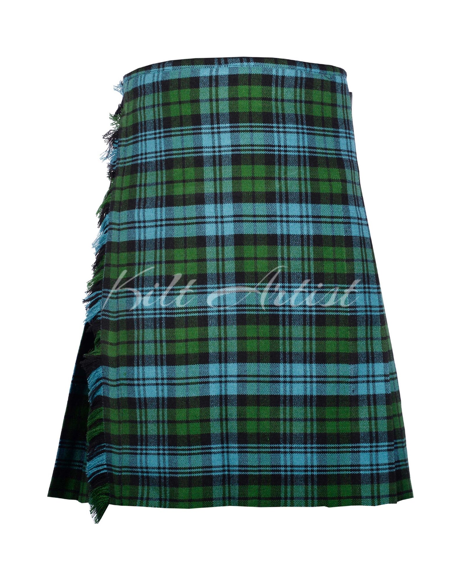 The Campbell Ancient Tartan 8 Yard Kilt reflects centuries of Scottish history and clan pride. This tartan features soft, weathered shades of green, blue, and black with subtle lighter accents. The ancient color palette creates a traditional and timeworn appearance. It feels authentic and dignified.
