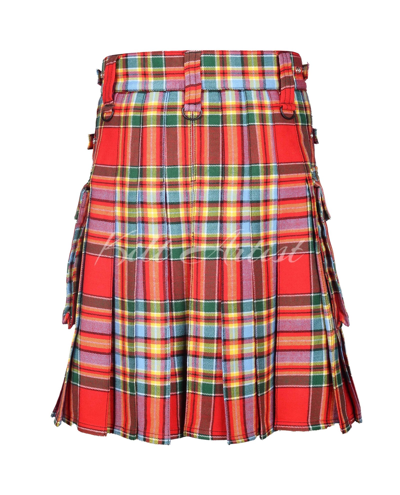 Adjustable leather straps with sturdy metal buckles ensure a secure and customized fit around the waist and hips. The mid-knee length offers balanced coverage and pairs effortlessly with boots, ghillie brogues, or modern footwear. Whether styled formally with a jacket or casually with a shirt, this kilt adapts seamlessly to any outfit.