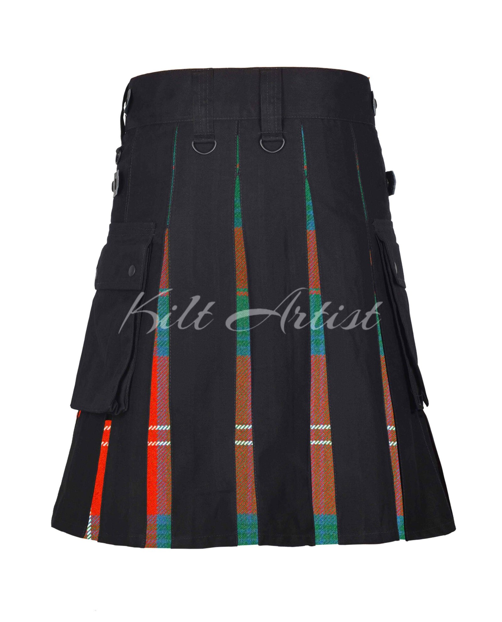 Designed for practicality, the Chisholm Clan Hybrid Kilt includes spacious utility pockets that securely hold essentials such as phones, wallets, keys, or small tools. Adjustable leather straps with rust-free metal buckles provide a secure, customizable fit, while reinforced stitching ensures long-lasting strength and durability. The hybrid design allows freedom of movement without compromising traditional style.