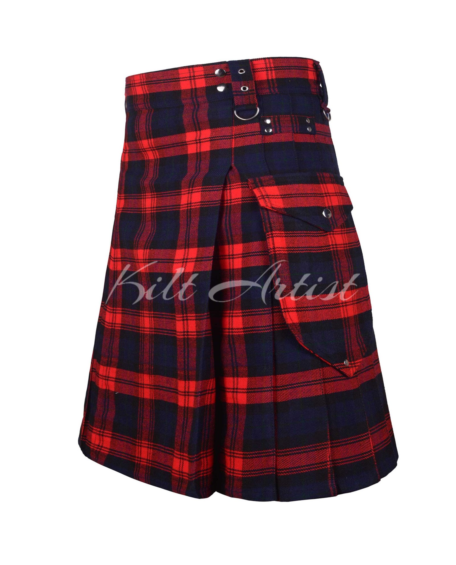 The striking Machlachan tartan pattern adds a classic yet bold look, making this kilt suitable for both traditional and modern styling. A pleated back design allows free and natural movement, while reinforced stitching enhances durability for rugged use.