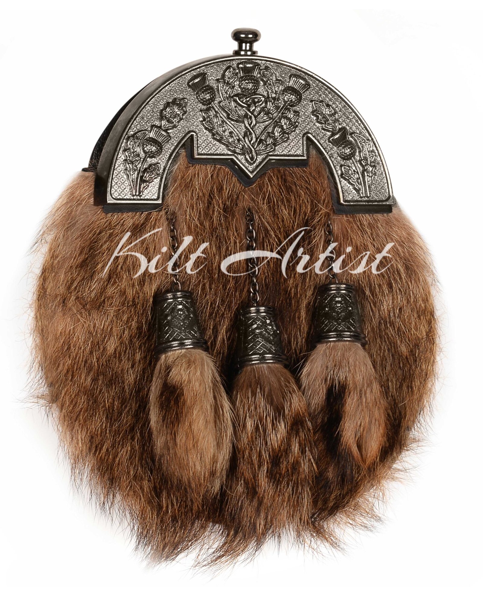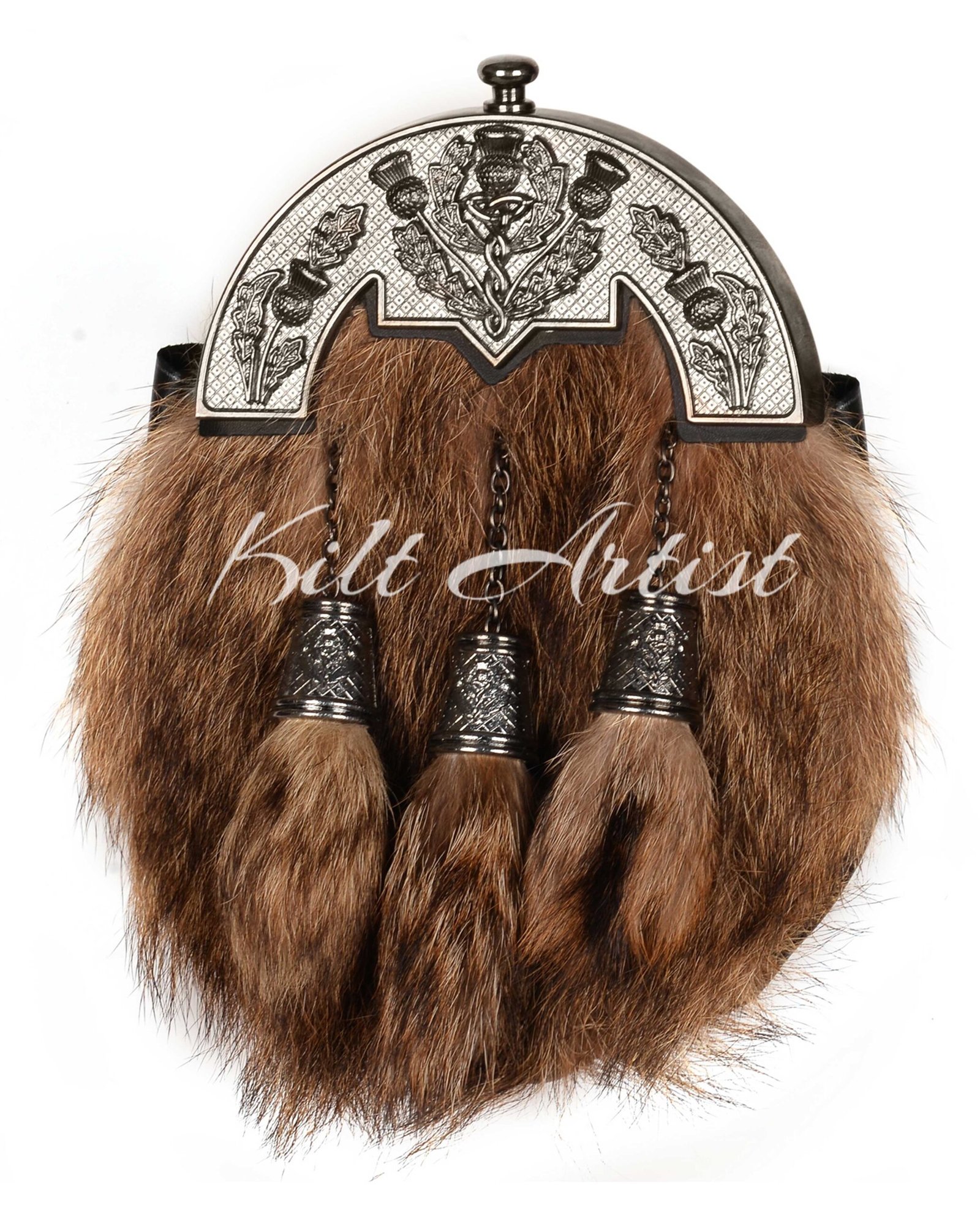 Make a bold statement with the Nickle Brushed Thistle Coyote Fur Full Dress Sporran, a striking accessory that blends authentic Scottish tradition with rugged natural elegance. Designed for formal Highland attire, this sporran adds character, luxury, and functionality to any full dress kilt outfit.