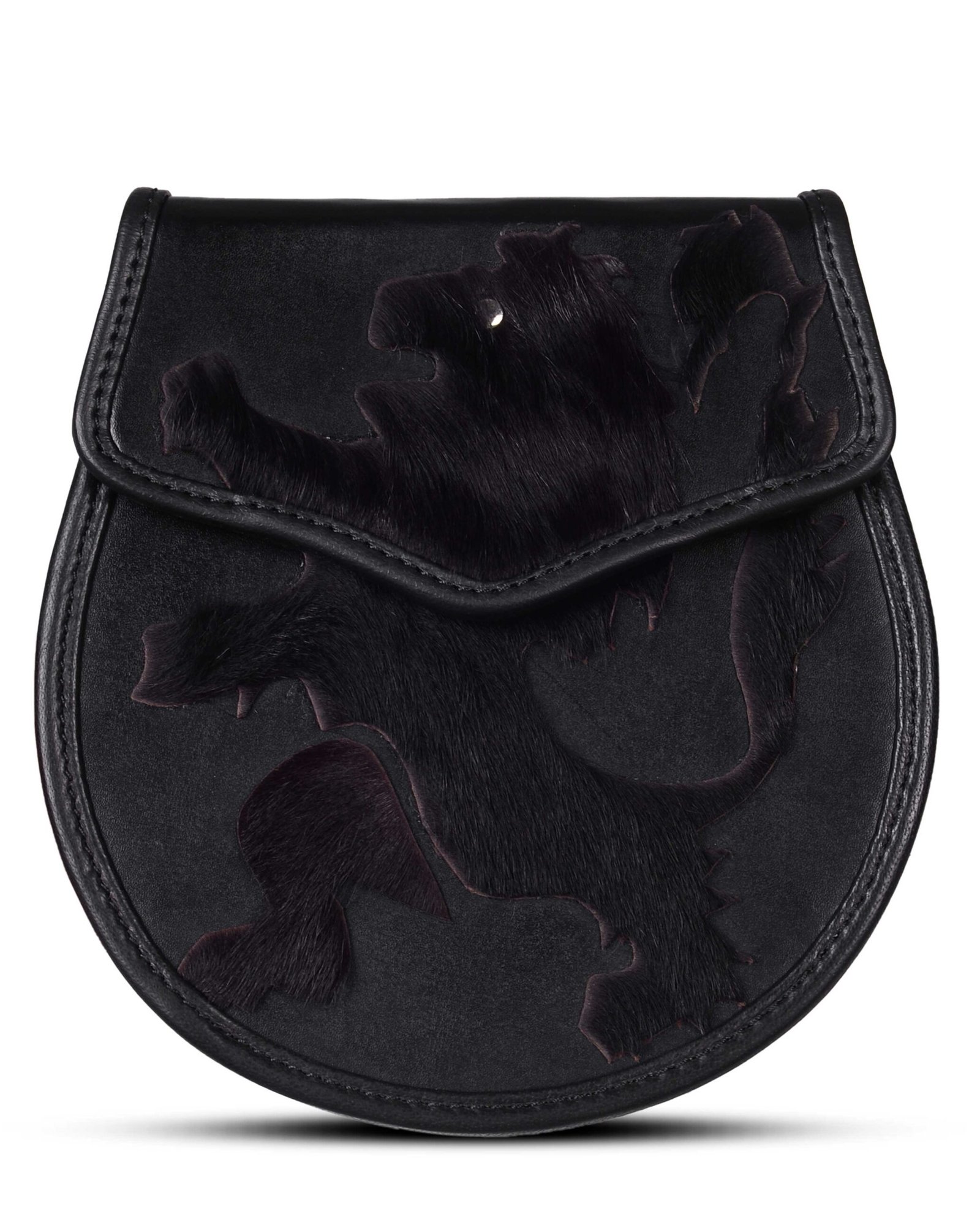 Elevate your Highland outfit with this striking Rampant Lion Theme Black Leather Day Sporran, a perfect combination of traditional Scottish heritage, premium craftsmanship, and everyday functionality. Expertly handcrafted from high-quality genuine black leather, this sporran features the iconic Rampant Lion emblem, symbolizing courage, strength, and Scottish pride. Its bold yet elegant design makes it a standout accessory for any kilt ensemble.