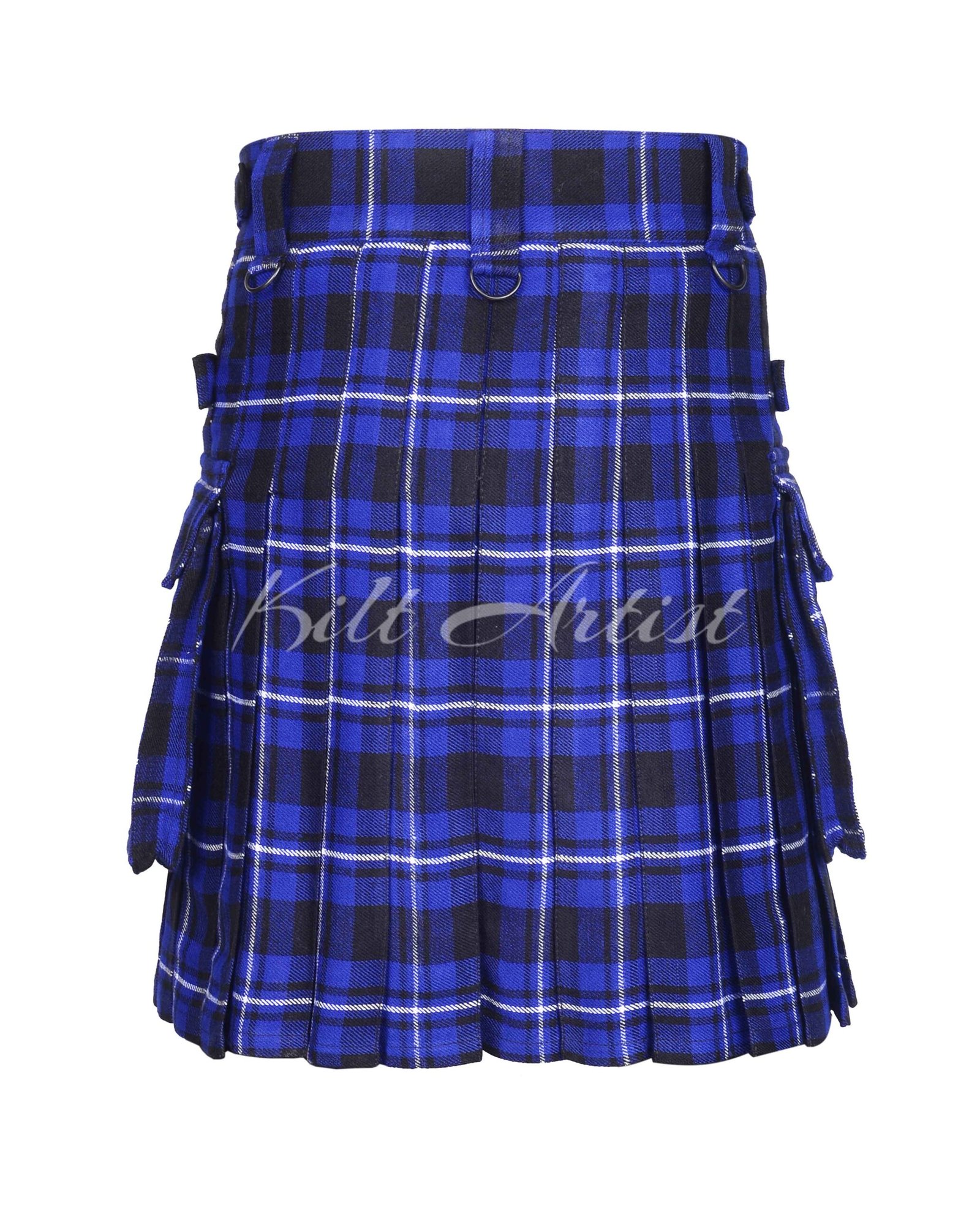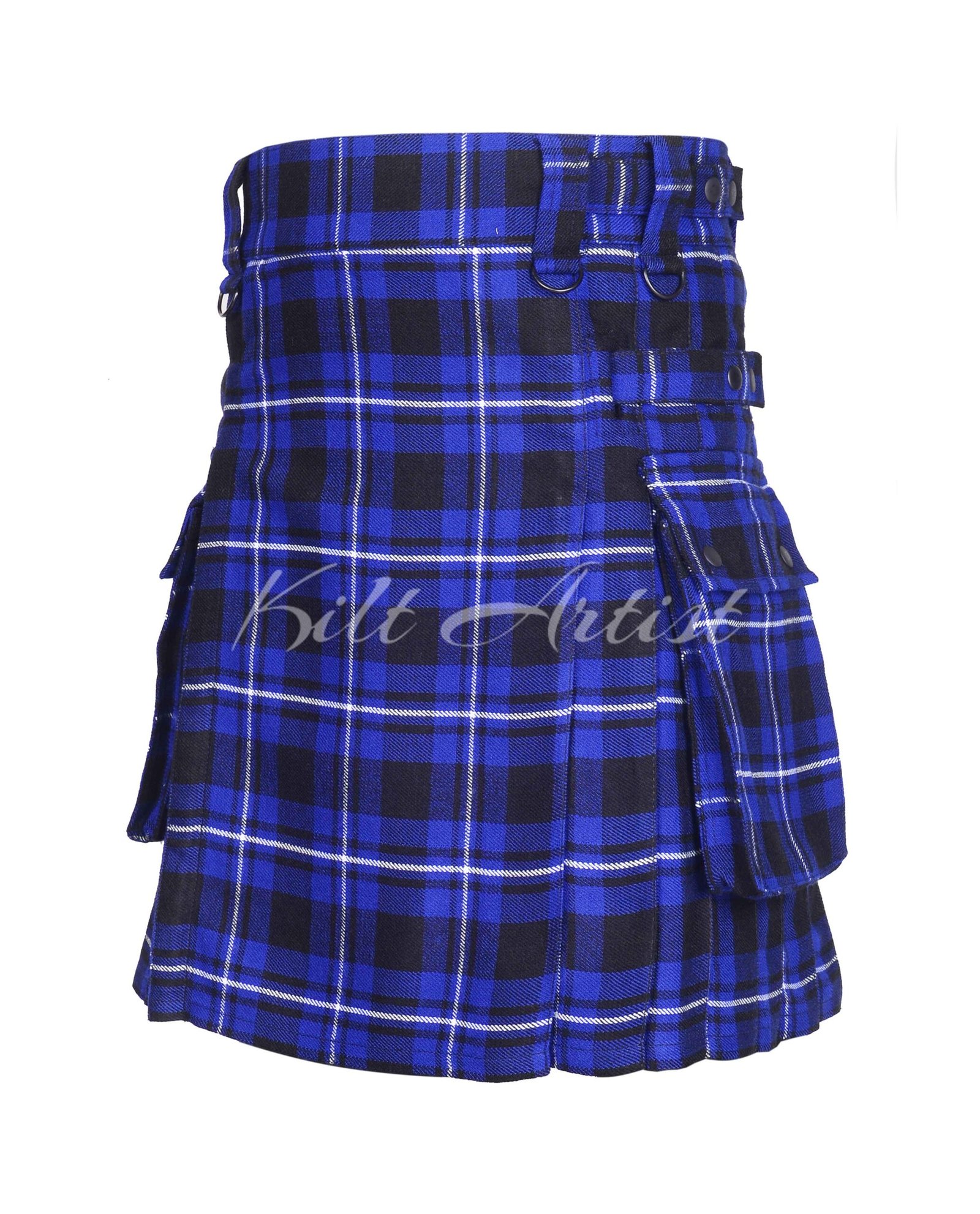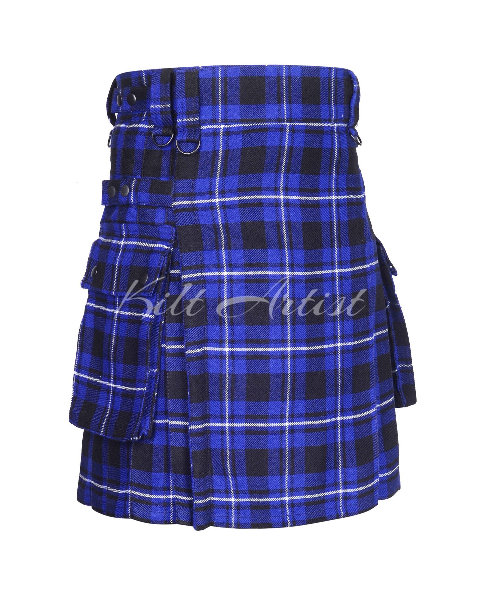 Style it with boots for a rugged edge or pair it with traditional Highland accessories for a polished, ceremonial look. The Ramsey Blue Tartan Utility Kilt is a versatile wardrobe essential that proudly reflects Scottish heritage while meeting the demands of modern life.