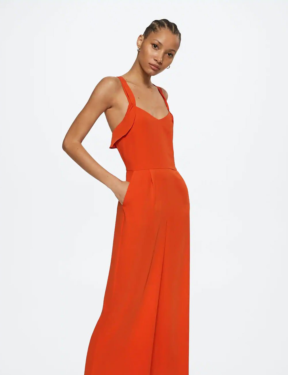 Cotton-blend fabric. Textured fabric. Long design. Evasé design. Wrap collar. Puffed short sleeve. Front slit. Knot detail. Bow closing on the back.