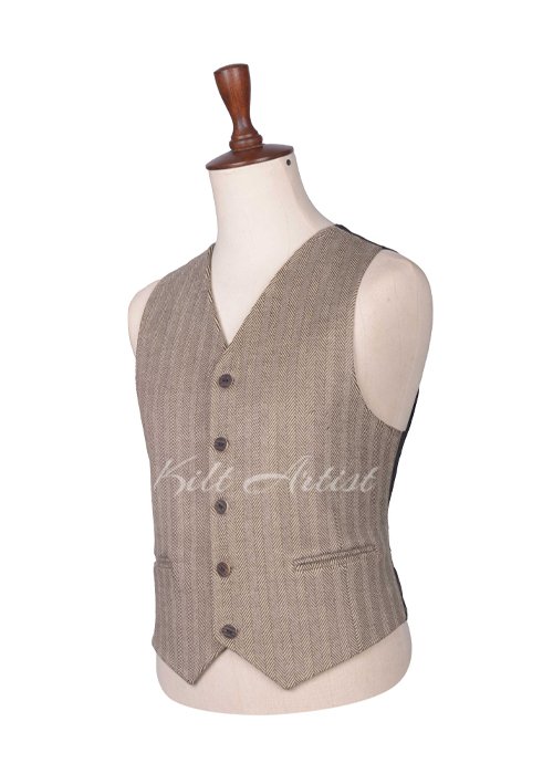 Made from high-quality tweed wool, the waistcoat provides warmth, durability, and a textured finish that enhances its luxurious appearance. The rich tan color brings a natural, earthy tone that pairs beautifully with a wide range of tartans, kilts, and dress shirts, making it a versatile choice for weddings, ceremonies, and formal gatherings.